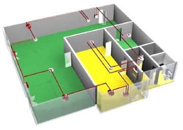 At all healthcare facilities, the system should be wired in a loop (Class A Wiring) and generally each loop can have up to 127 devices connected to it. The reason why the system is wired in a loop is that if the wire gets disconnected somewhere in the facility , the system will still function from either side of where the cable communication is lost. Thus it provides a backup route for the signals to travel. All fire detection systems hospitals are designed using a standard installation method (L1) which regulates how the system is installed, where detection is placed and what type of system is installed.